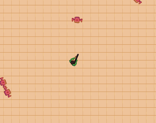 This is a top down shooter. Your aim is to destroy robots and collect biscuits.